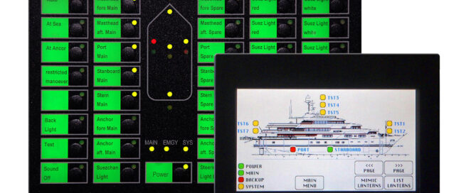 O NLS 3000 é um sistema de Luzes de Navegação fácil de usar. Ele é fornecido com até 48 canais, com certificado de Tipo Aprovado (Type Approved) pela a Alemã German Lloyd (GL). Em alternativa, pode ser operado com fontes de alimentação 24VDC, 115VAC ou 230VAC. As teclas de função permitem que configurações padrão como "Navegando", "Fundeio", "RAM" ou "inversão de rumo" sejam ativadas por um único botão ou mesmo automaticamente por um contato externo. Devido ao conceito modular, é possível uma aplicação versátil de acordo com os requisitos a bordo. Os módulos das luminárias podem ser montados em uma sala de controle central ou nas proximidades das respectivas luminárias Até dois painéis de controle convencionais e / ou gráficos podem ser conectados para controlar e monitorar o status das luminárias. Uma caixa de terminação contém todos os terminais de entrada e saída, bem como o módulo de fonte de alimentação com comutação automática principal/emergência. As dimensões da caixa de terminação estarão de acordo com a configuração do sistema. Equipado com dois contatos secos, onde é possível a conexão de sirenes externas ou a ativação de sistemas de alarme externos. Como módulos opcionais, a interface NMEA 0183 está disponível para o VDR e uma interface Modbus-RTU usada para controle e monitoramento externo, como por exemplo, pelo sistema de automação do navio.