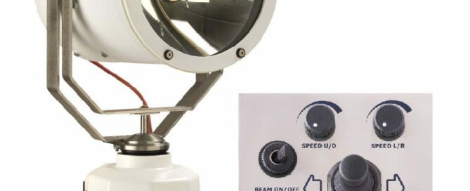 O holofote DHR260 Halogen é equipado com óticas excelentes. A série possui: um espelho parabólico banhado a prata com foco ajustável, oferecendo um alcance de 1100 metros com um feixe bastante estreito. O controle remoto RCN é usado para operação em vários locais da embarcação. Outra grande vantagem é a flexibilidade no posicionamento do holofote. Independentemente da localização dos controles, ele pode ser montado em qualquer lugar da embarcação.